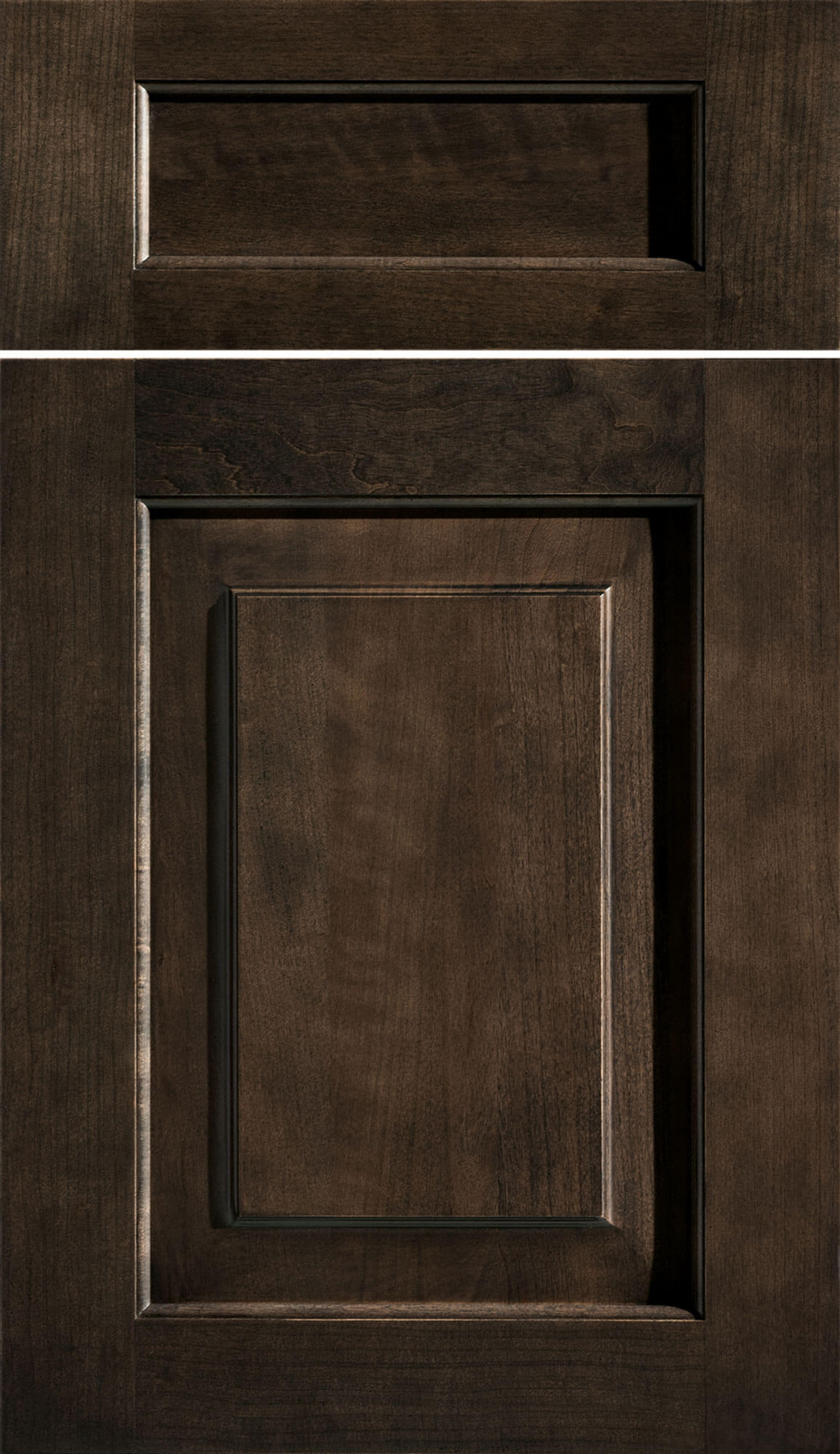 Trendy stain colors for cherry cabinets from Dura Supreme Cabinetry with brown, and gray/brown stain hues.
