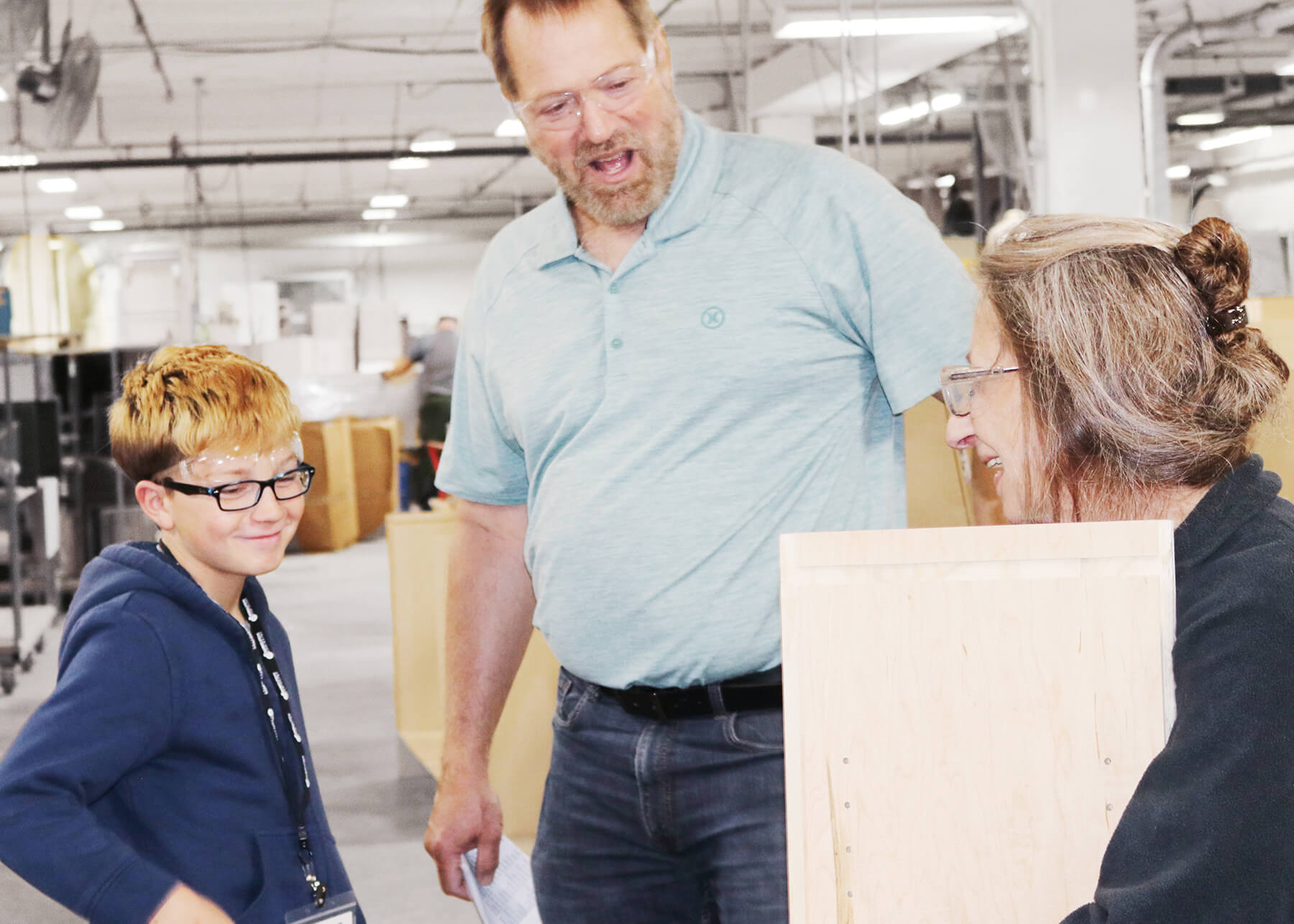 During the tour, every child gets to make a special stop to see their parent or grandparent and hear them explain and demonstrate what their role is at Dura Supreme to the tour group.