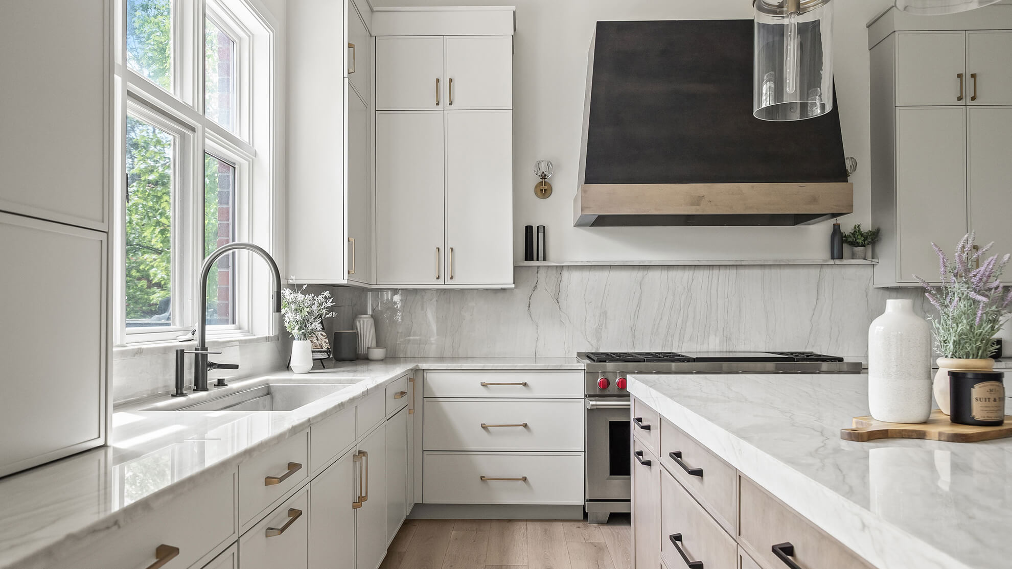 This was more than a kitchen remodel. From the family room to the dining area, home office, and even a new basement kitchen, every space was intentionally designed to feel part of a unified whole—without becoming repetitive.