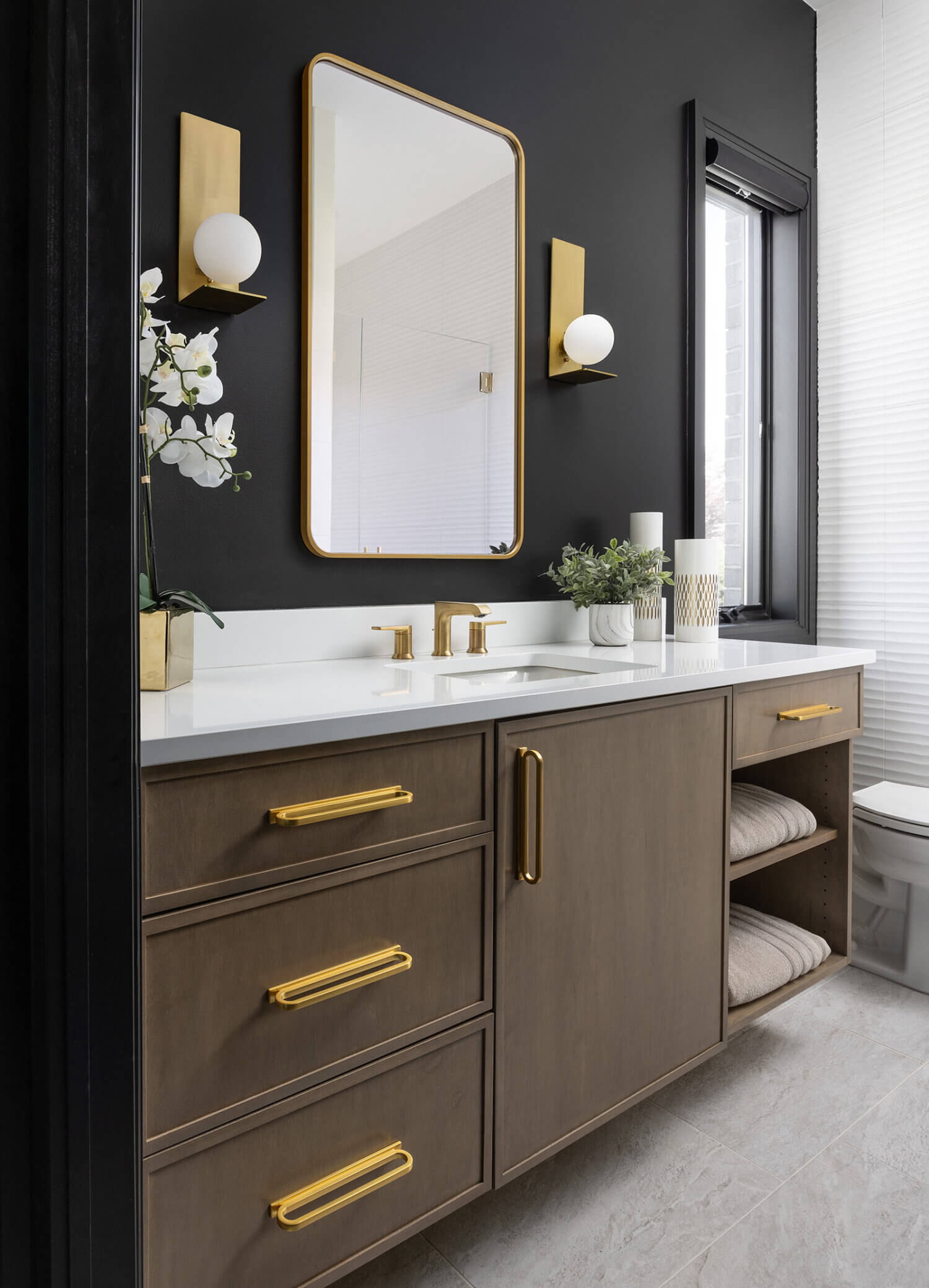 A Masculine Bathroom with a Slim Shaker Cabinet Style