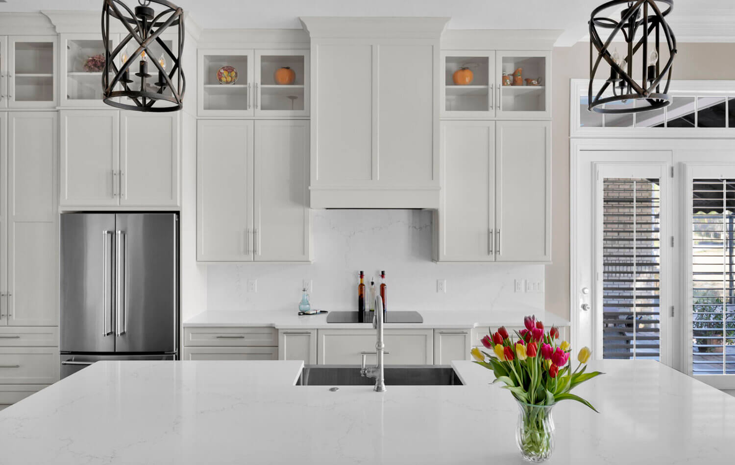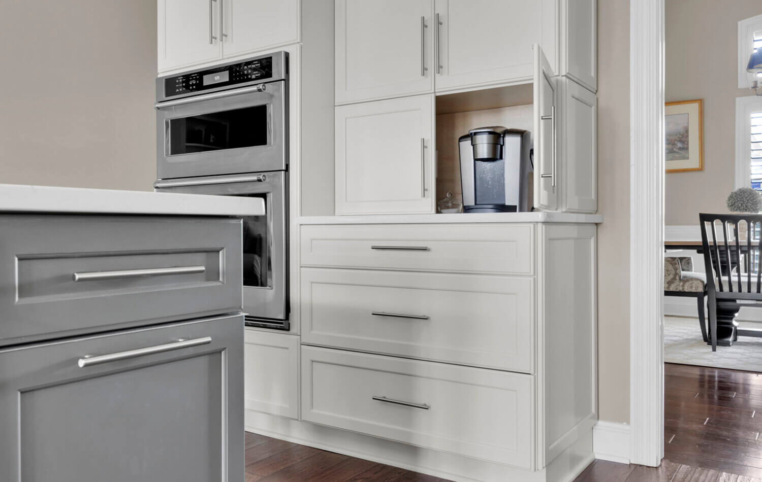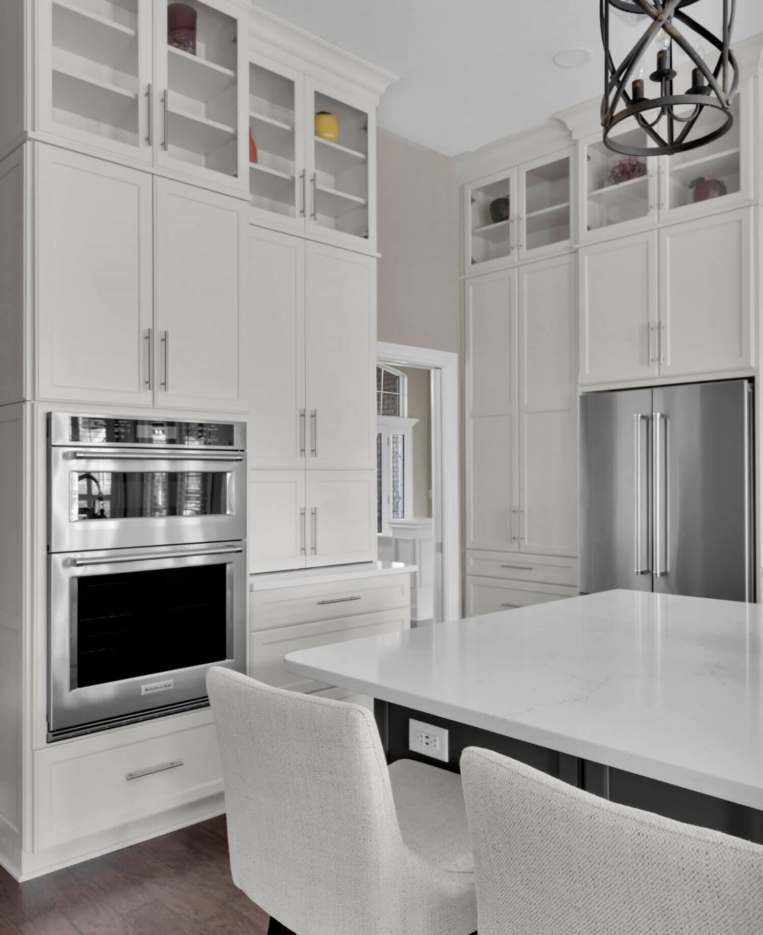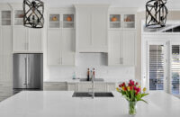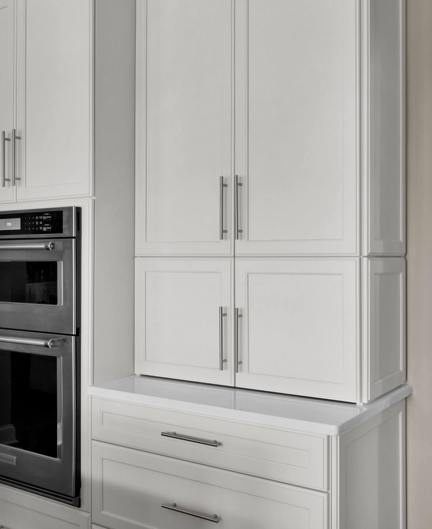 Get ready to fall in love with this stunning kitchen remodel that combines sleek design with classic styling and an inviting atmosphere. The beautiful “Linen White” painted cabinets bring a sense of brightness and airiness to the space, while the Arcadia Panel door style adds a traditional classic touch.