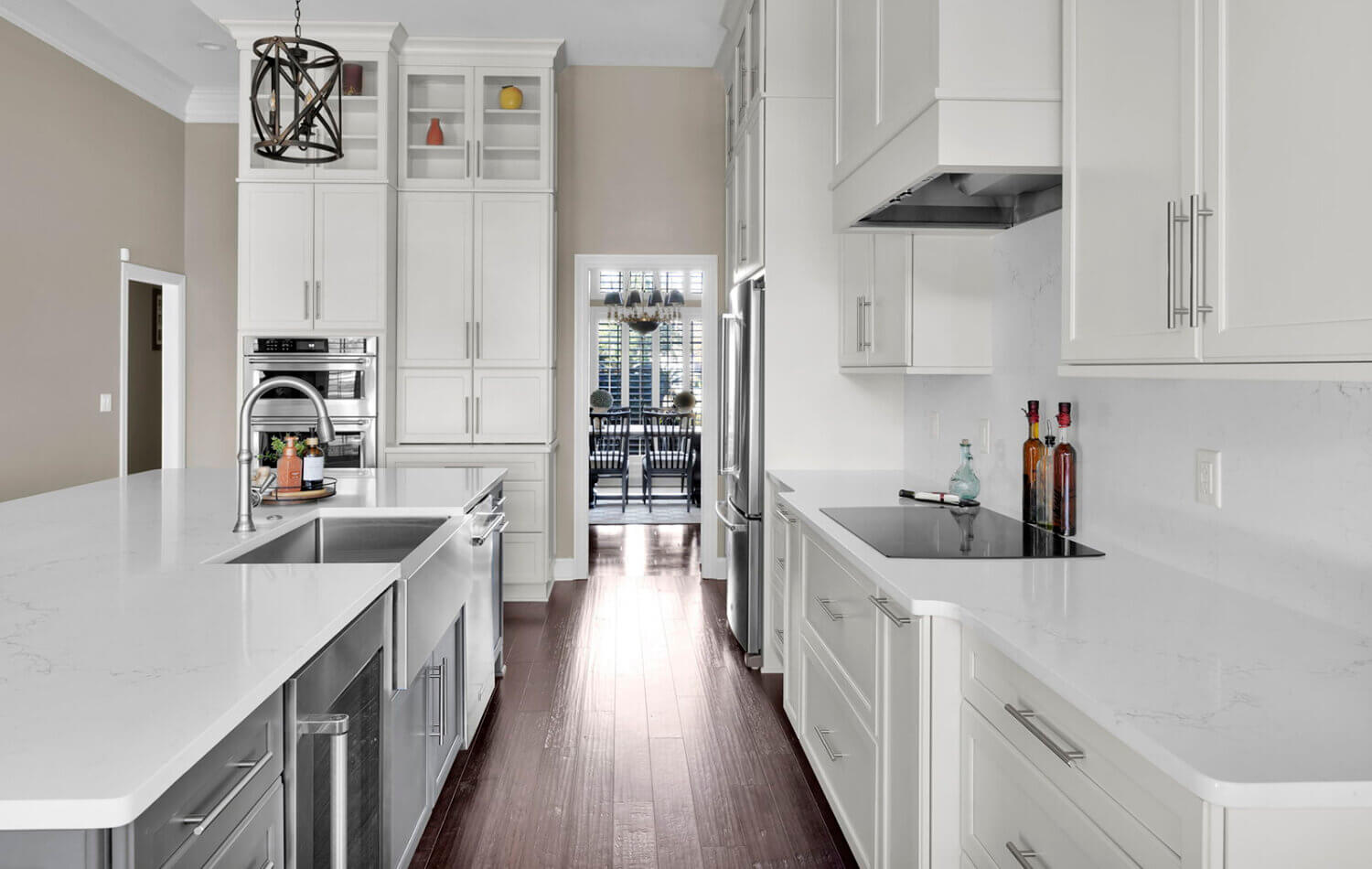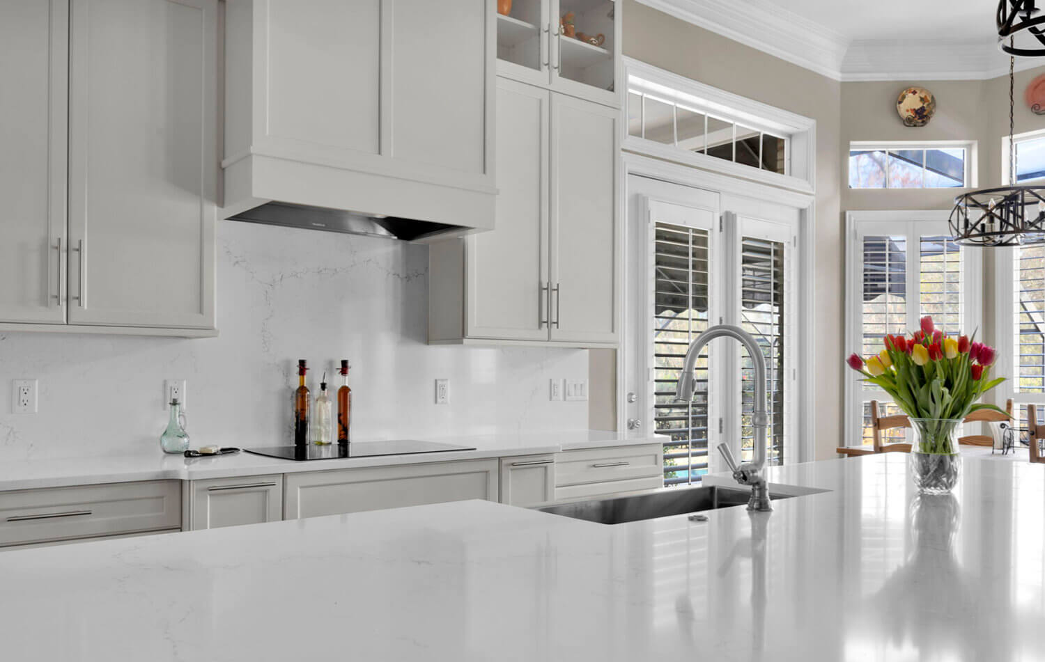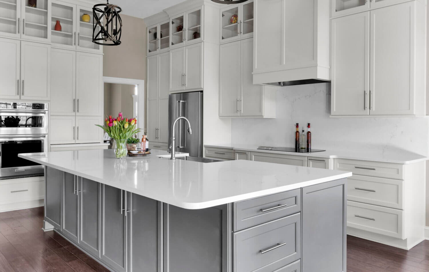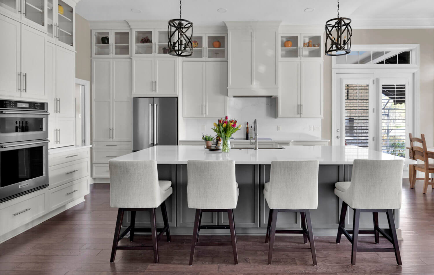 Get ready to fall in love with this stunning kitchen remodel that combines sleek design with classic styling and an inviting atmosphere. The beautiful “Linen White” painted cabinets bring a sense of brightness and airiness to the space, while the Arcadia Panel door style adds a traditional classic touch.