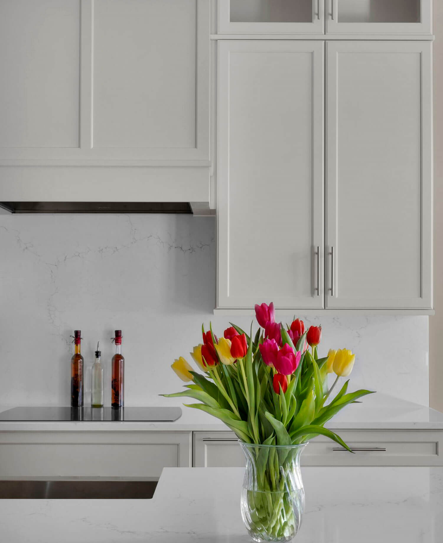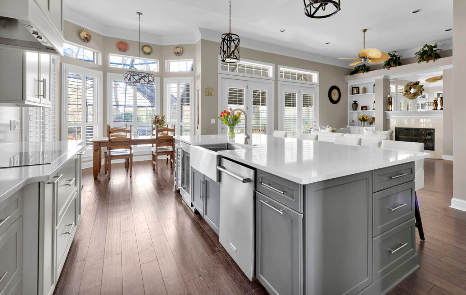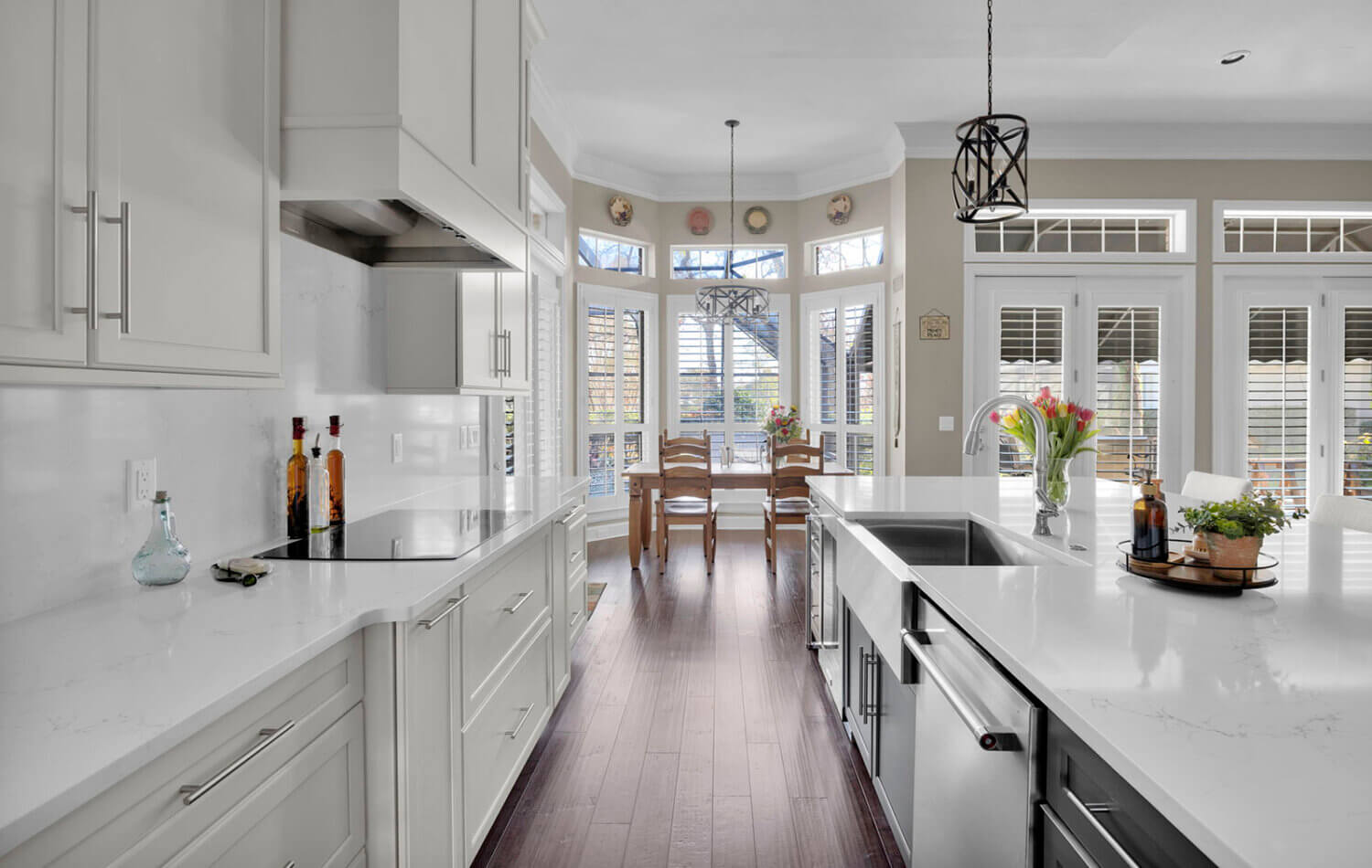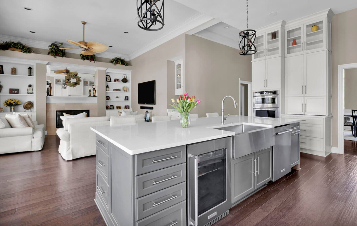 Get ready to fall in love with this stunning kitchen remodel that combines sleek design with classic styling and an inviting atmosphere. The beautiful “Linen White” painted cabinets bring a sense of brightness and airiness to the space, while the Arcadia Panel door style adds a traditional classic touch.