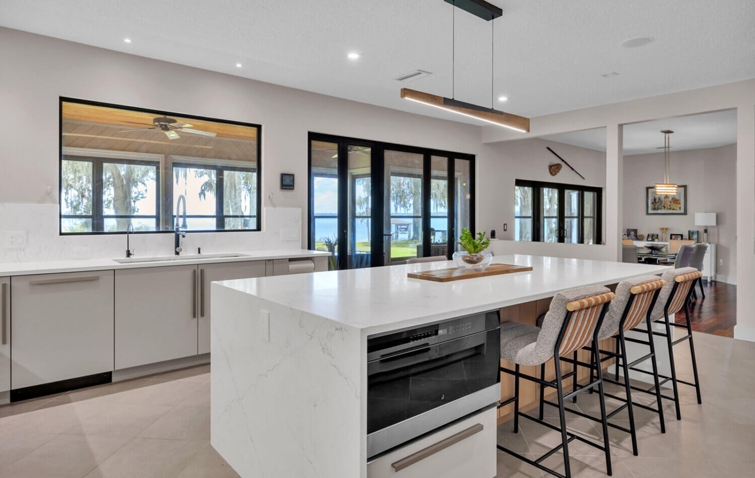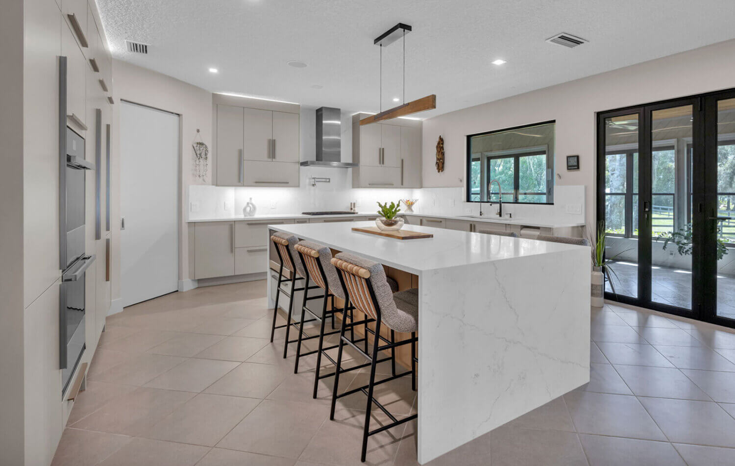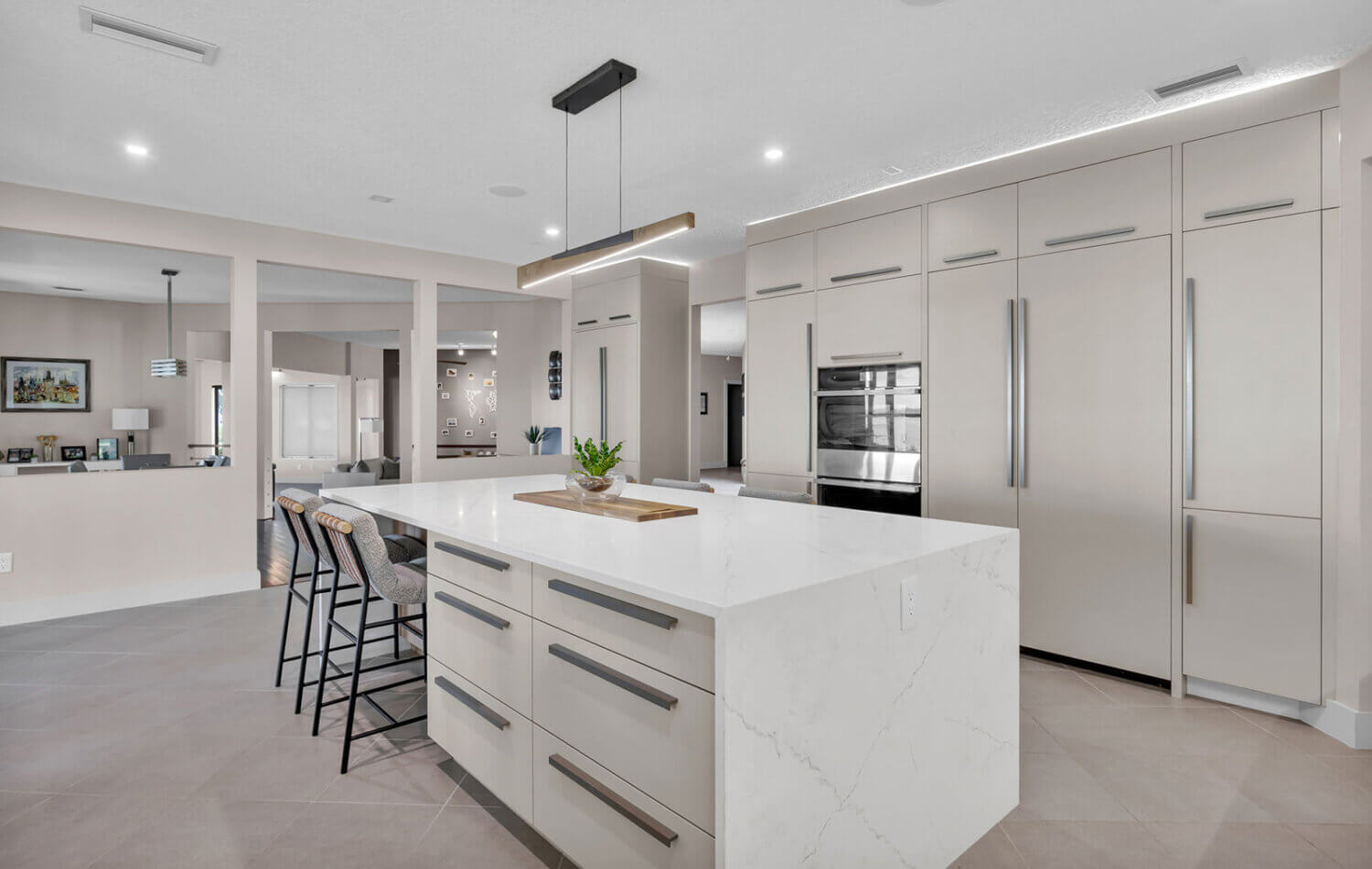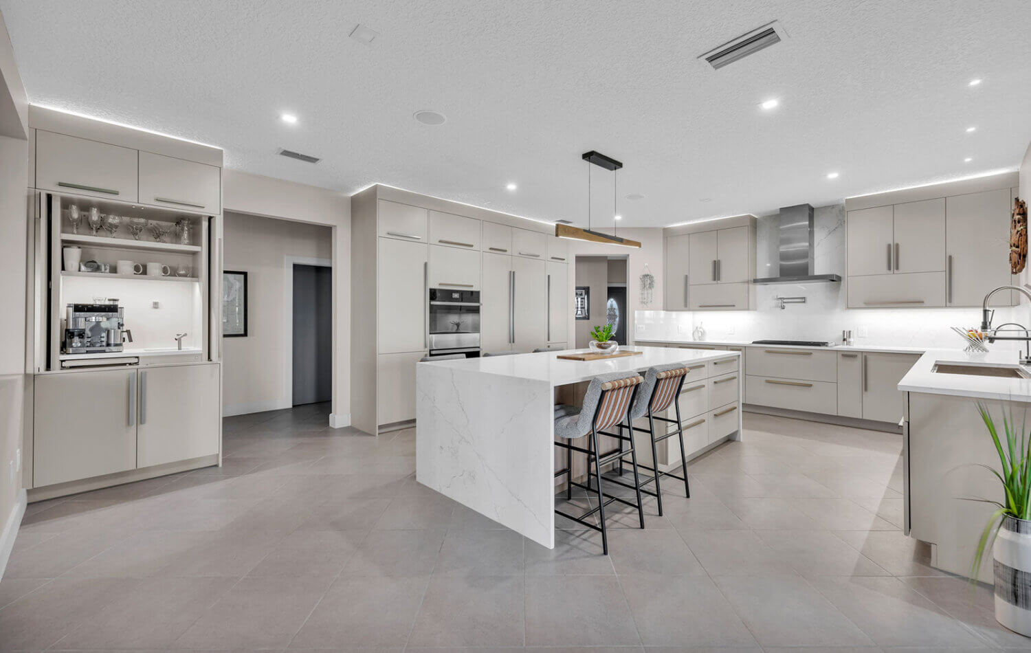 By combining sleek design elements with practical storage solutions, this kitchen sets a new standard for modern living.