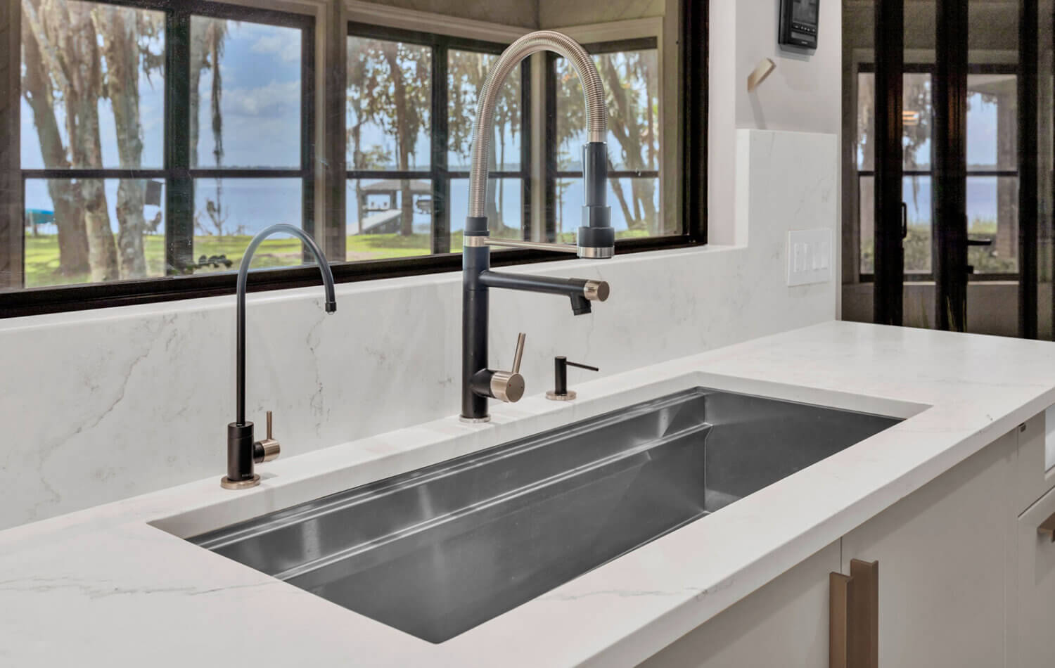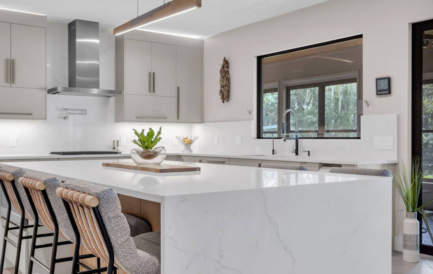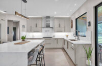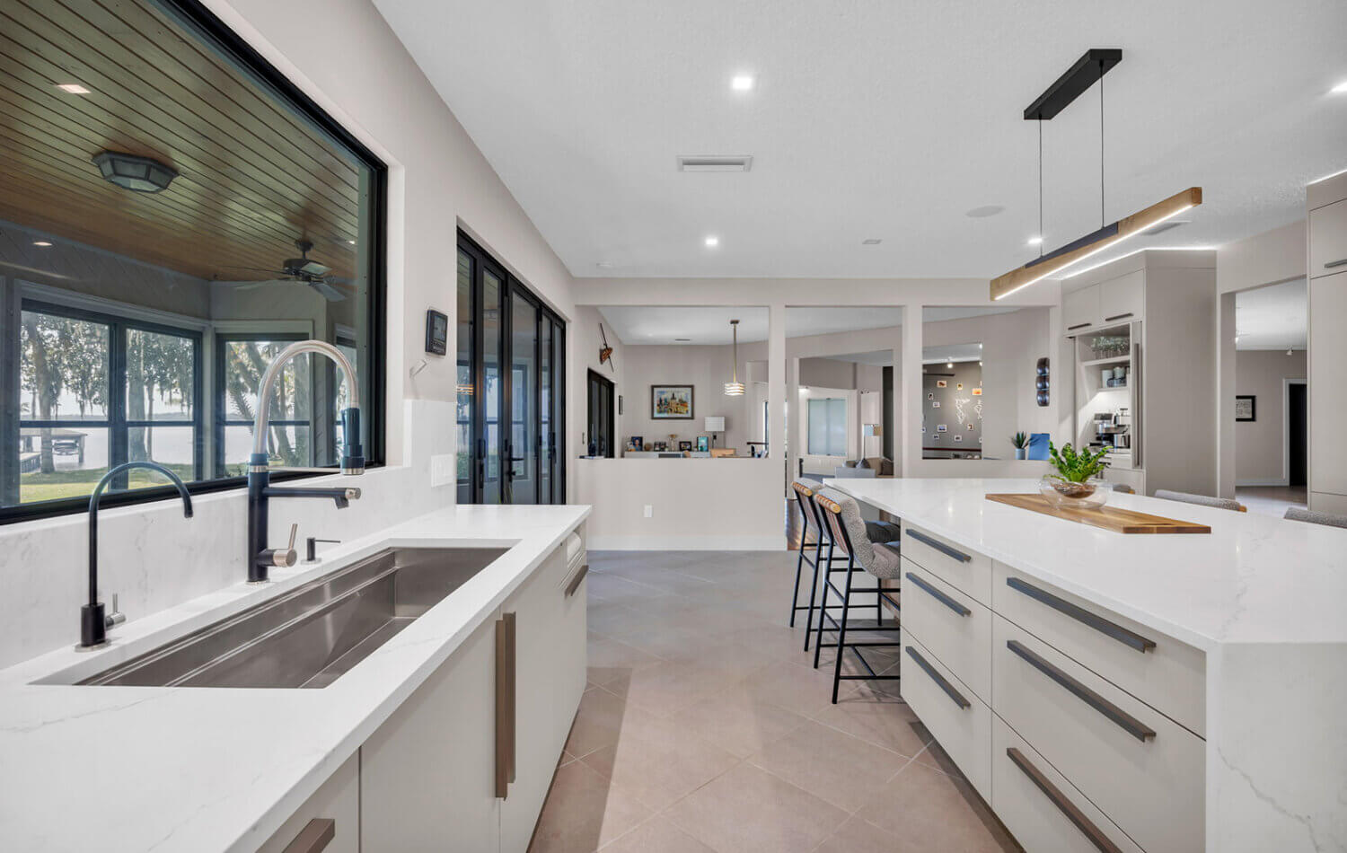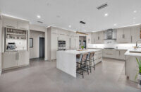 By combining sleek design elements with practical storage solutions, this kitchen sets a new standard for modern living.