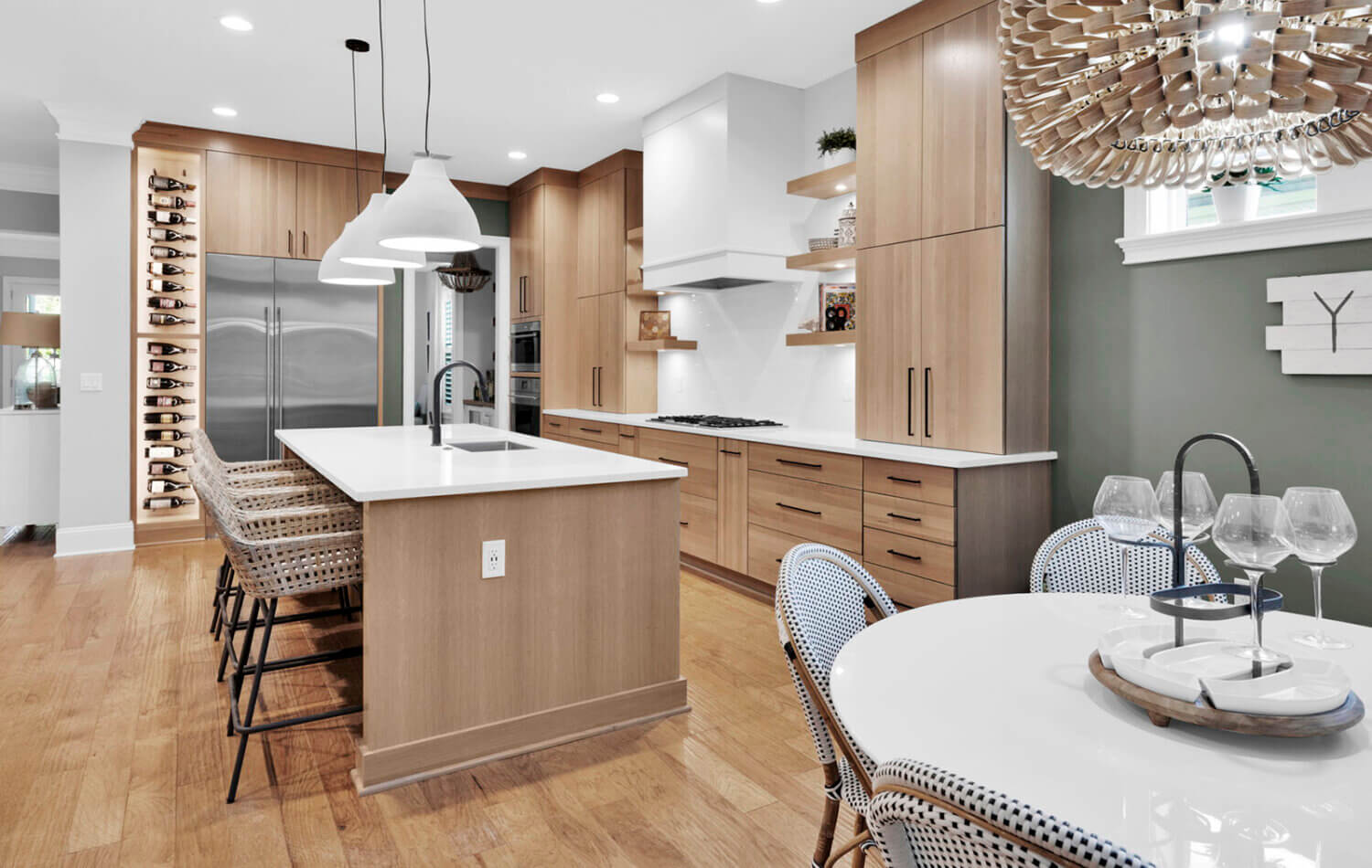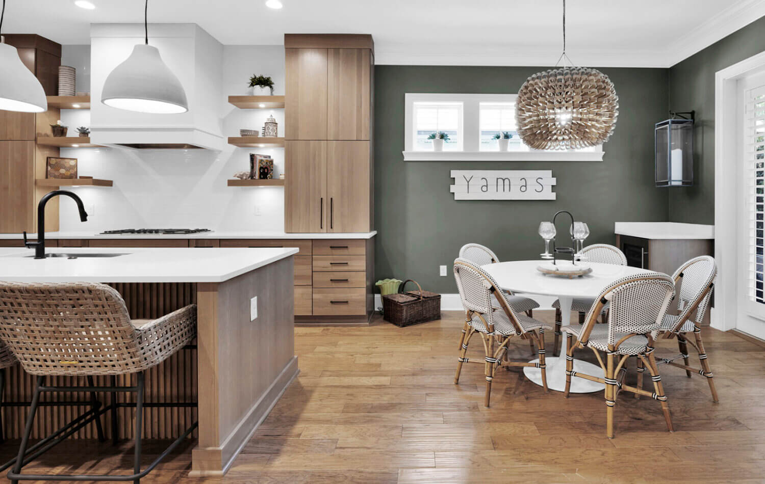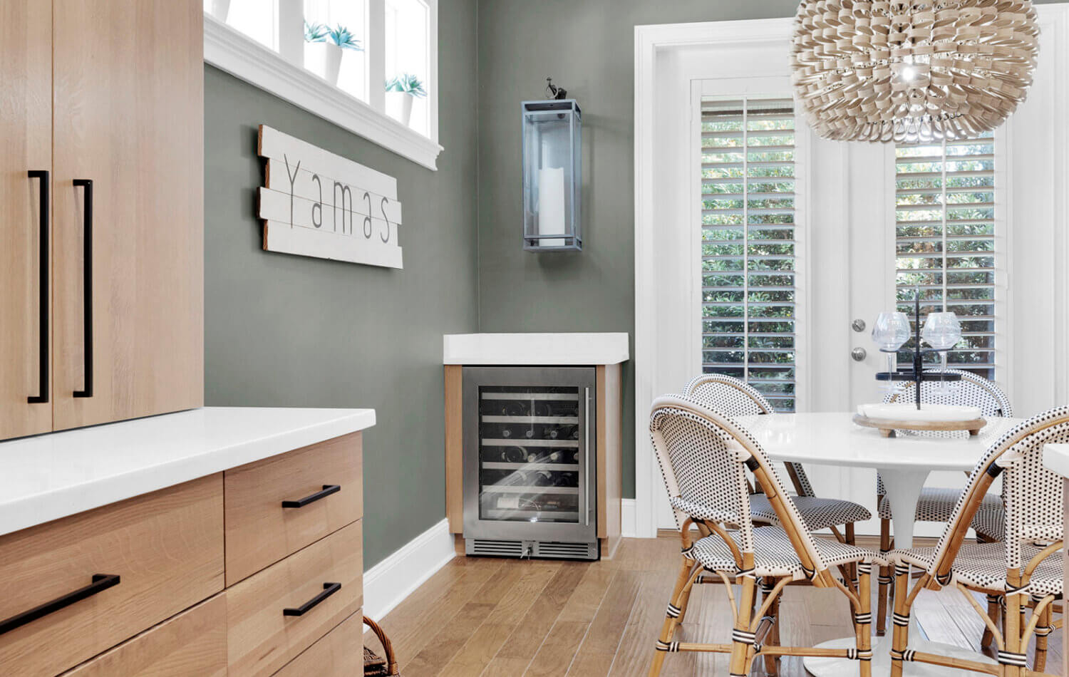 Green, White, and Quarter-Sawn White Oak Kitchen & Dining Room