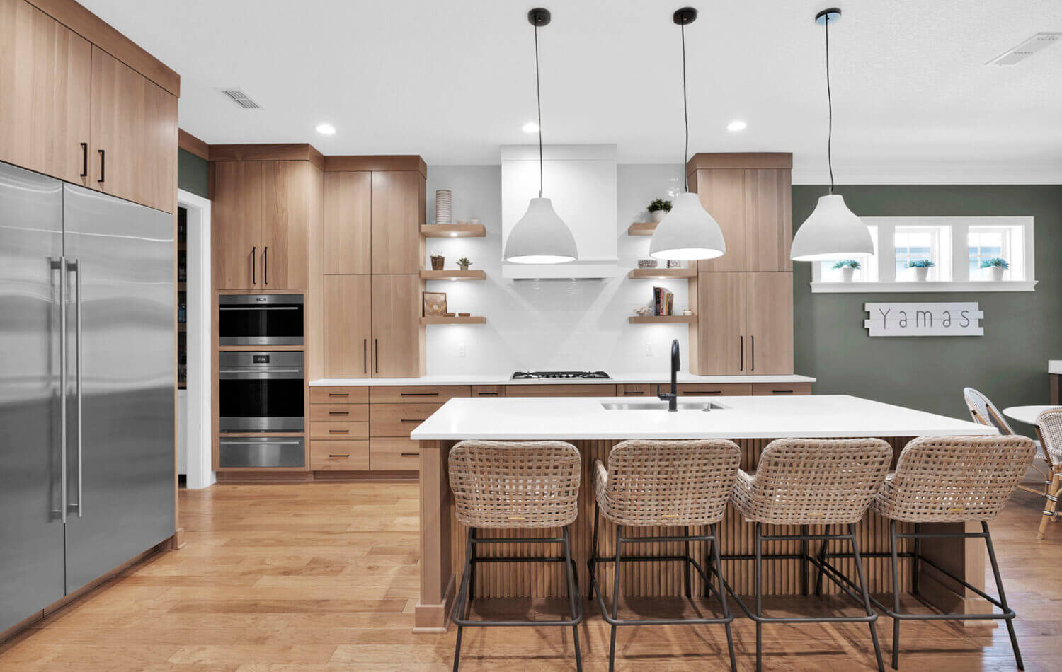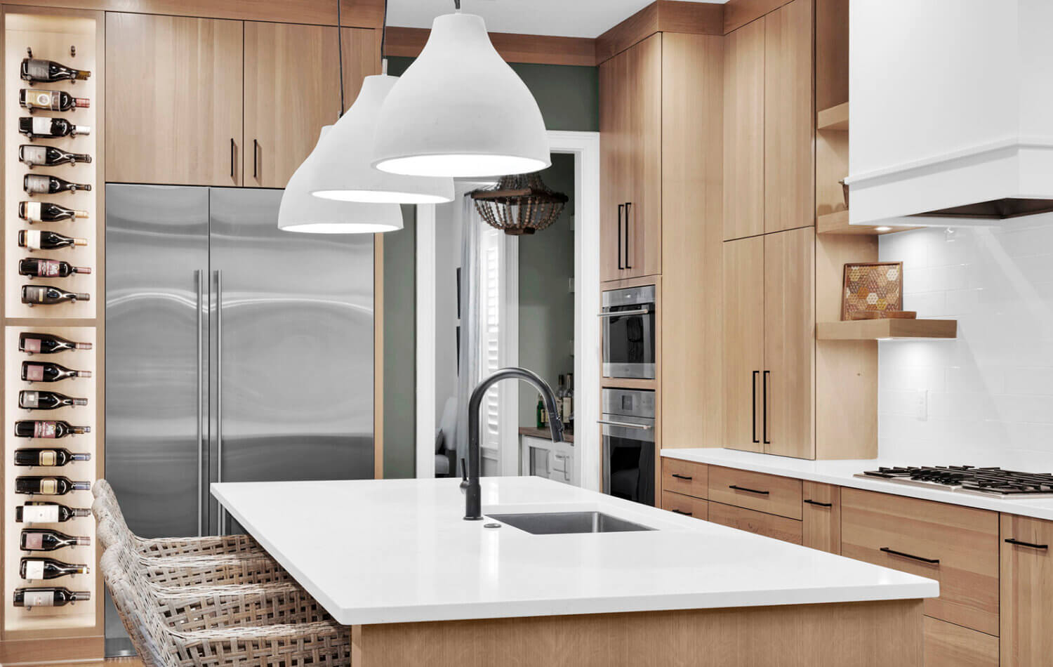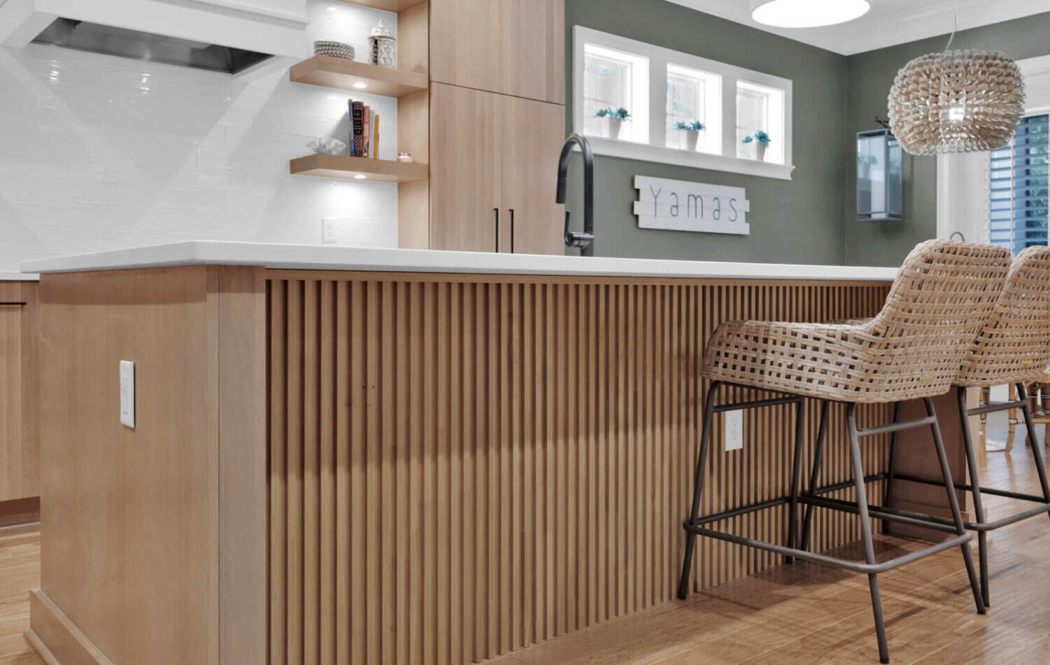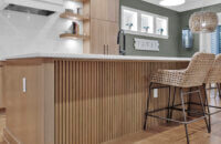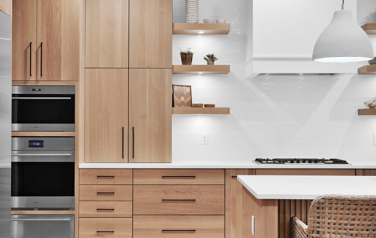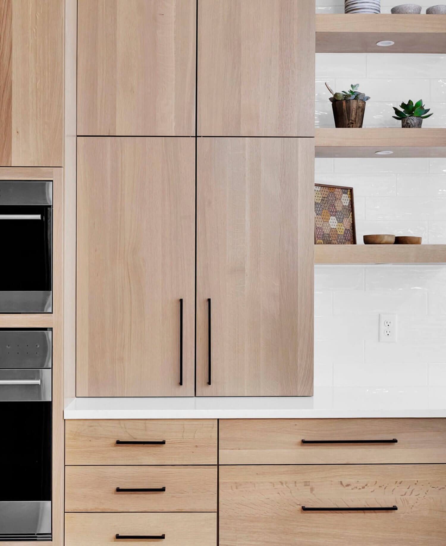 Sleek lines, warm wood tones, and a dash of sophistication. This kitchen’s Quarter-Sawn White Oak cabinets add the perfect combination of raw and natural textures to the room. This design uses Dura Supreme Cabinetry’s Camden door style in the “Coriander” stain on Quarter-Sawn White Oak.