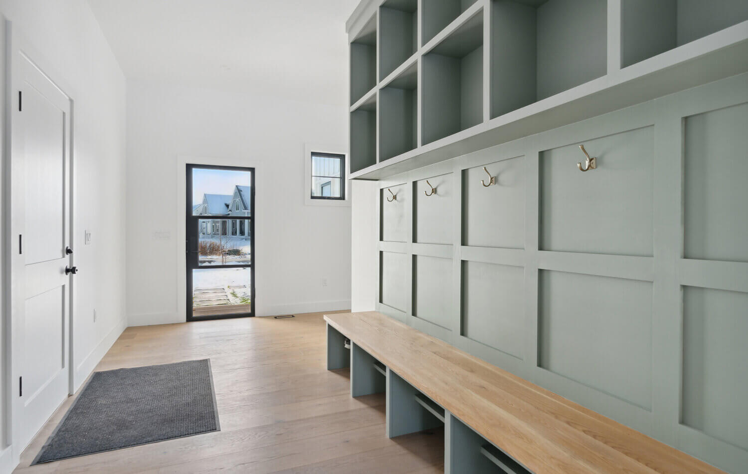 Modern Farmhouse Mudroom with a Splash of Sage Green