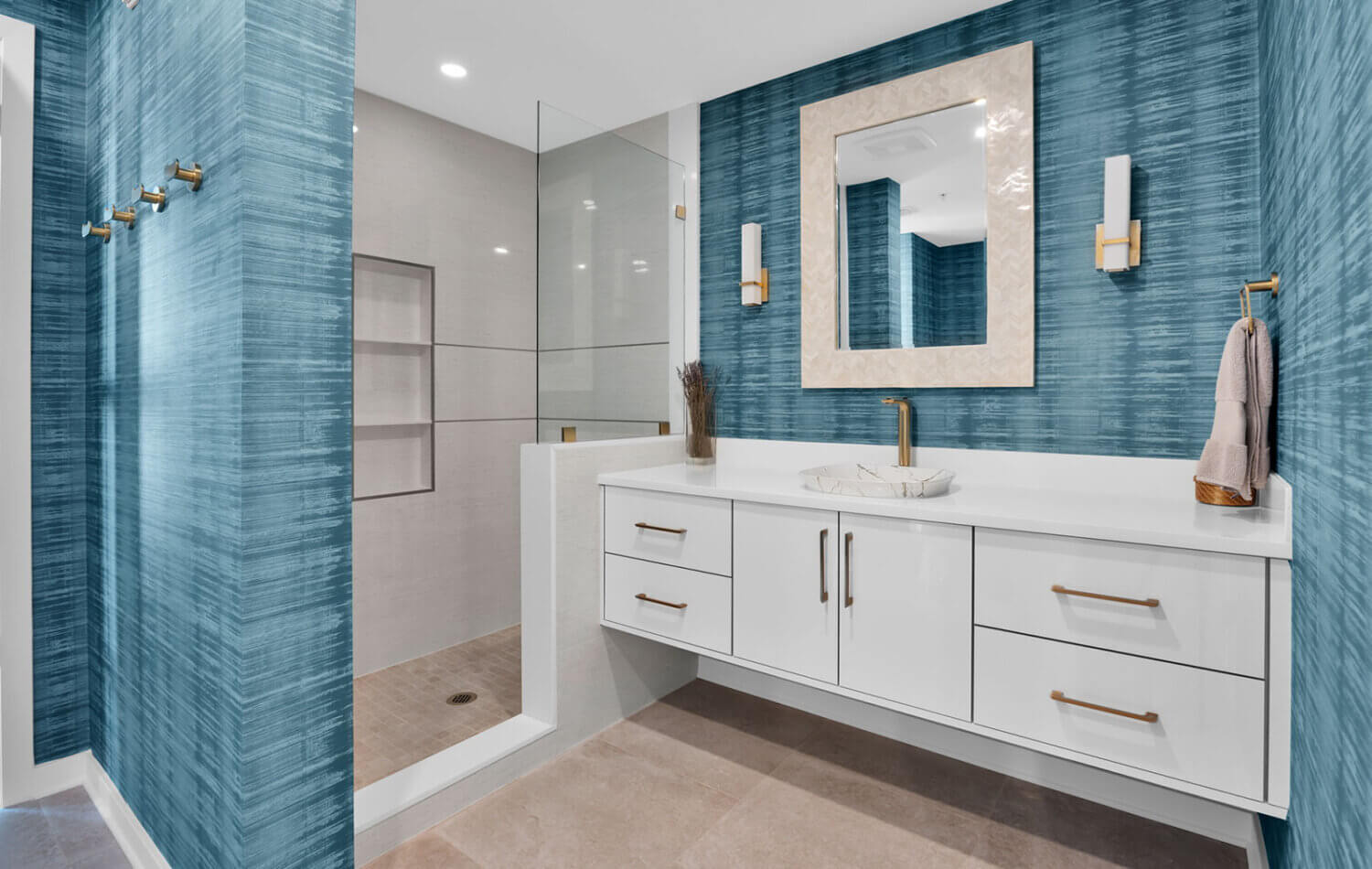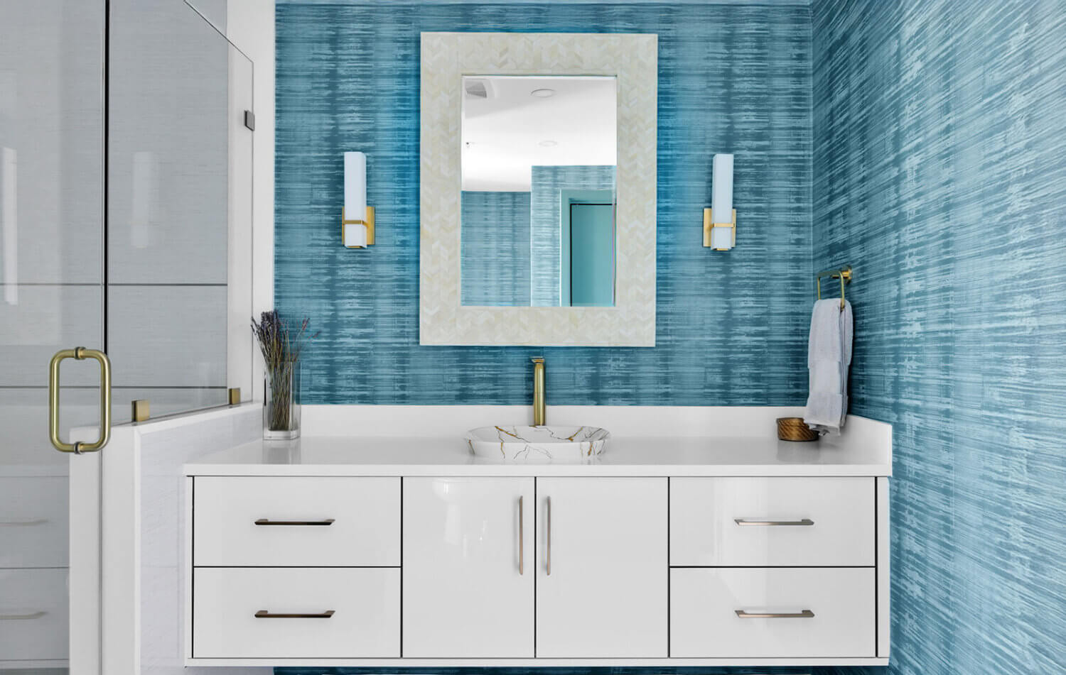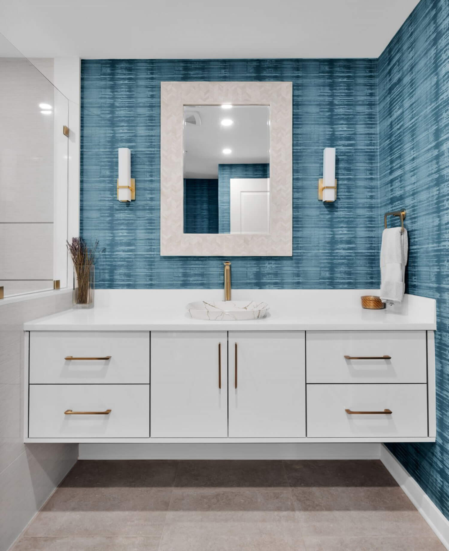 Ocean-inspired Modern Bathroom with a Glossy Floating Vanity